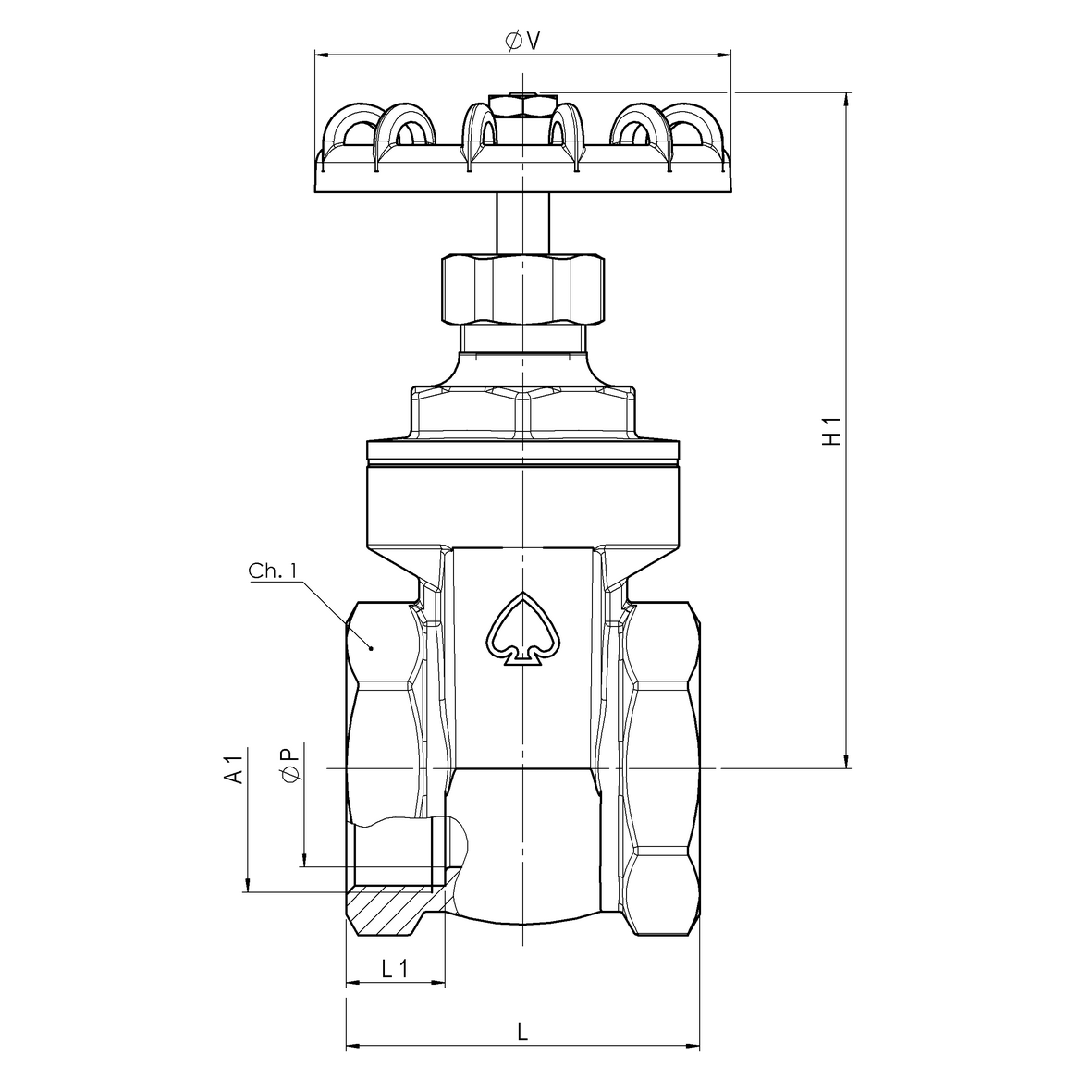 Bronze full-bore gate valve PN25 with handwheel FEMALE-FEMALE